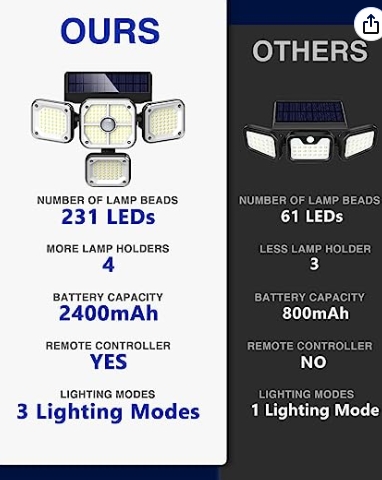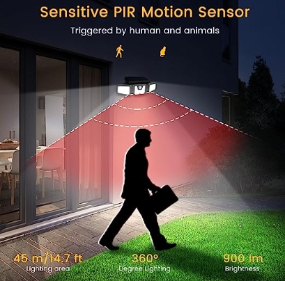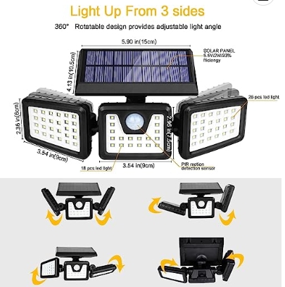 ZKIBW projecteur solaire PIR 3 têtes l'unité