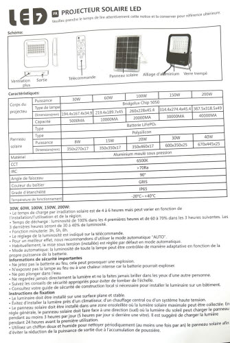 LZ003 Eclairage solaire 6000k 304x105x2*48mm
