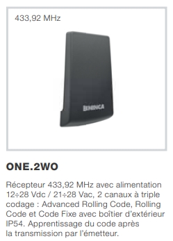 One.2WO Récepteur Beninca 2 fonction Exterieur