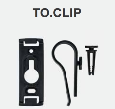 TO.CLIP est l’accessoire pour fixer les télécommandes TO.GO sur le pare-soleil ou les bouches d’aération de votre voiture.