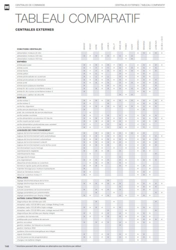 Aide au choix Tableau des fonctions comparatives des coffrets de commande