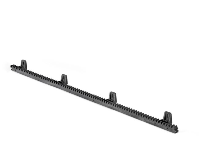Crémaillère nylon armé acier 4 attaches à visser, livrée avec vis et rondelles de fixation.